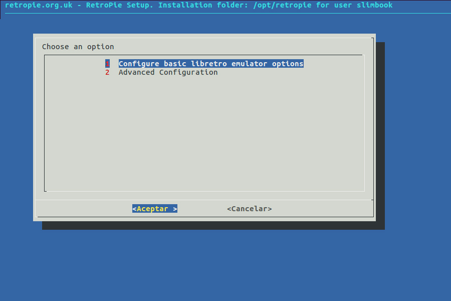 3 - Primera opción: Configure basic libretro emulator options