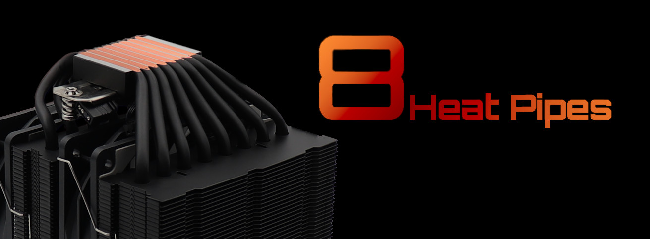 8 tubos de cobre ajustados al núcleo de la CPU con la mejor conductividad térmica. |