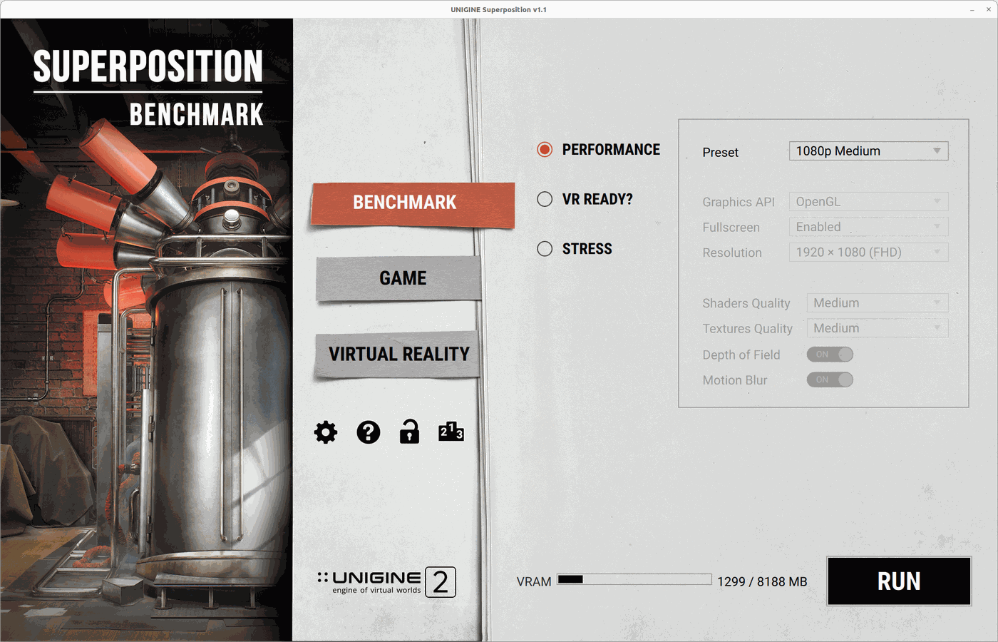 Elegís el preset que mas os interese y hacéis clic en RUN. Al final del benchmark os da una puntuación. La podéis comparar en el leaderboards de Unigine.
