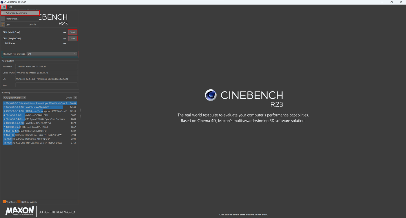 Activamos las opciones avanzadas: File -> Marcar casilla "Advanced benchmark".