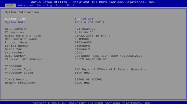 Inmediatamente después de encender tu Slimbook, comienza a presionar repetidamente la tecla correspondiente para acceder a la BIOS. Es posible que debas hacerlo varias veces y con cierta rapidez, ya que tienes solo unos pocos segundos antes de que el sistema operativo comience a cargar.