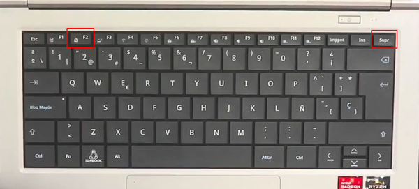 Tan pronto como enciendas tu portátil, debes estar listo para presionar la tecla correspondiente para acceder a la BIOS. En la mayoría de los casos, estas teclas son "F2" o "Supr". Asegúrate de conocer la tecla correcta para tu modelo, puedes revisar el manual si tienes dudas.