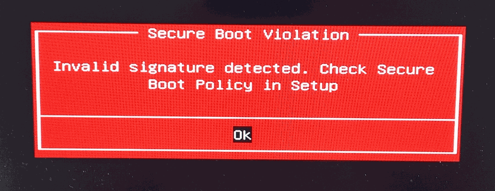 - Secure Boot Violation. Invalid Signature Detected. Check Secure Boot Policy in Setup