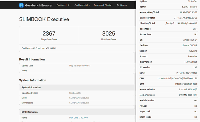 El resultado nos aparecerá en la web de Geekbench, el siguiente resultado es de un Executive 14 12700H.