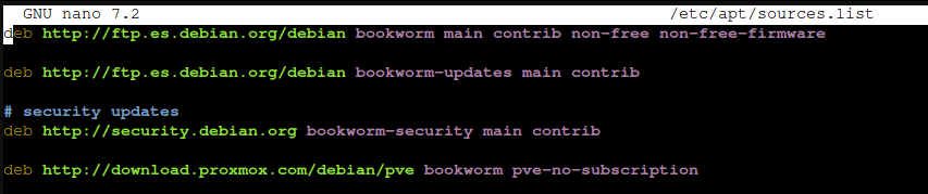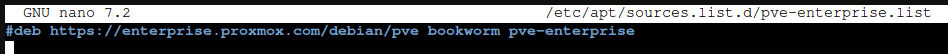 Ruta 3: sudo nano /etc/apt/sources.list.d/pve-enterprise.list