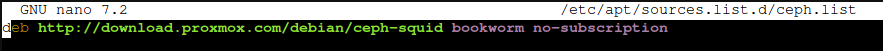 Ruta 2: sudo nano /etc/apt/sources.list.d/ceph.list