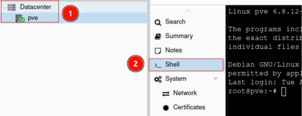 ## Vamos a DataCenter y pulsamos en el nodo pve