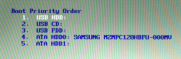 Opción fácil, paso 2: Seleccionamos con las flechas del teclado la opción "USB HDD" y pulsamos intro.