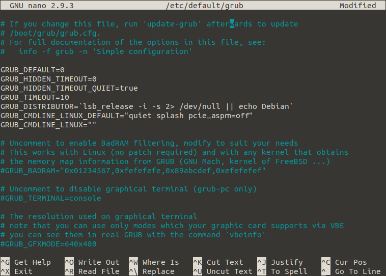 sudo nano /etc/default/grub |