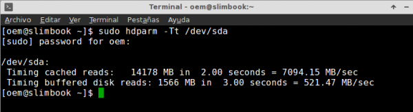 En Linux, mediante la instrucción ‘hdparm -Tt /dev/sda’, le hacemos un testeo de velocidad a nuestro disco duro.