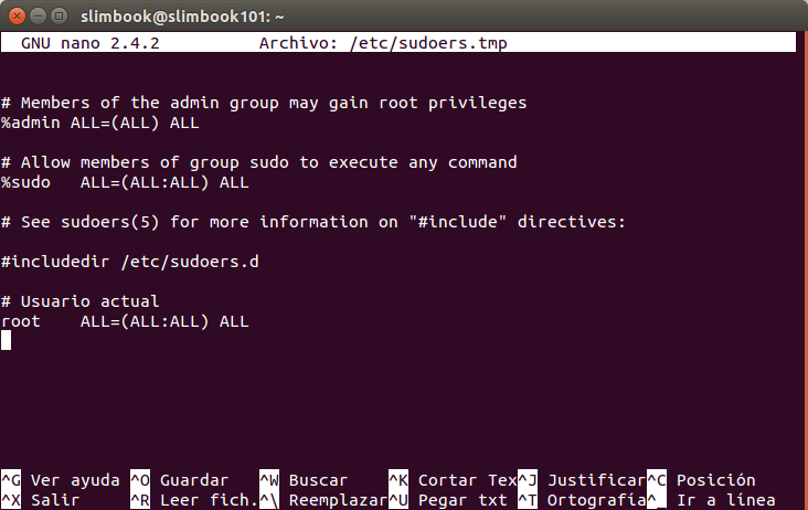 Acceso a "sudoers" mediante visudo
