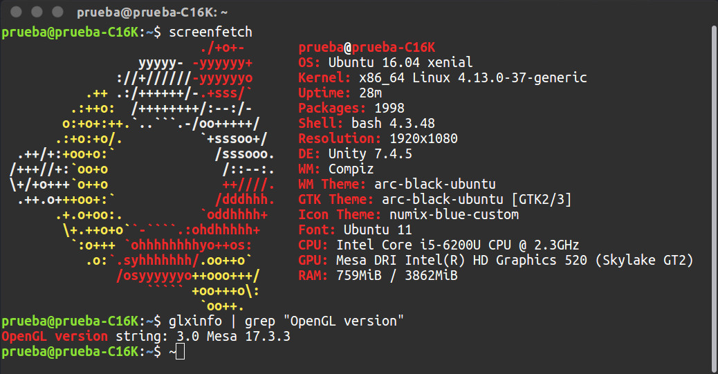 Si queremos comprobar la versión de OpenGL, utilizaremos el siguiente comando: