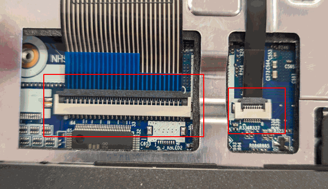 4. Levanta suavemente el teclado hacia la parte de la pantalla para dejar ver los conectores.