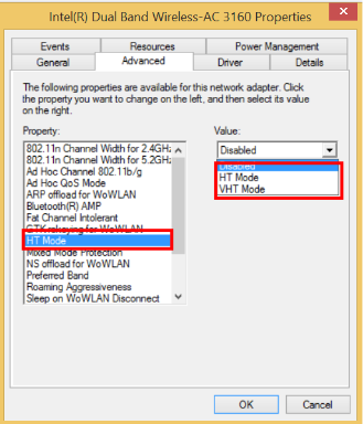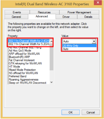 8- Por ultimo buscamos la propiedad "802.11n Channel Width for 2.4Ghz" y cambiamos su valor a "20Mhz Only".