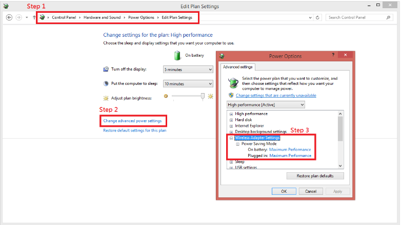 Debemos cambiar ambas opciones por "Máximo rendimiento" tanto con batería como con red eléctrica conectada.