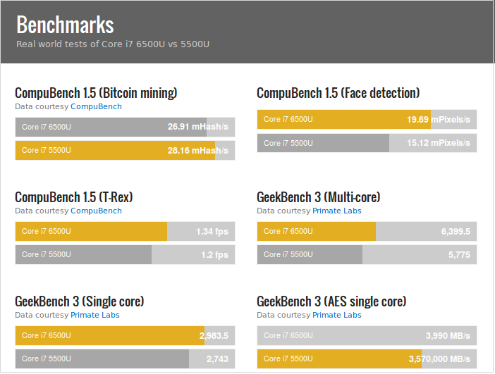 Intel Core i7 5500U vs. Intel Core i7 6500U