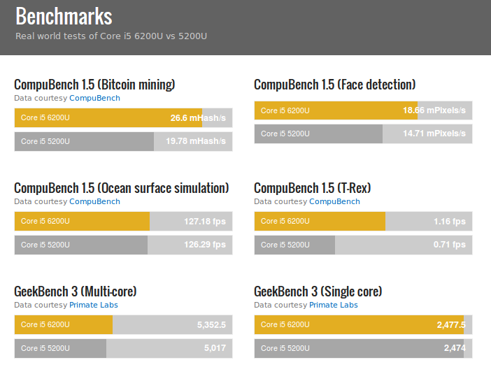 Intel Core i5 5200U vs. Intel Core i5 6200