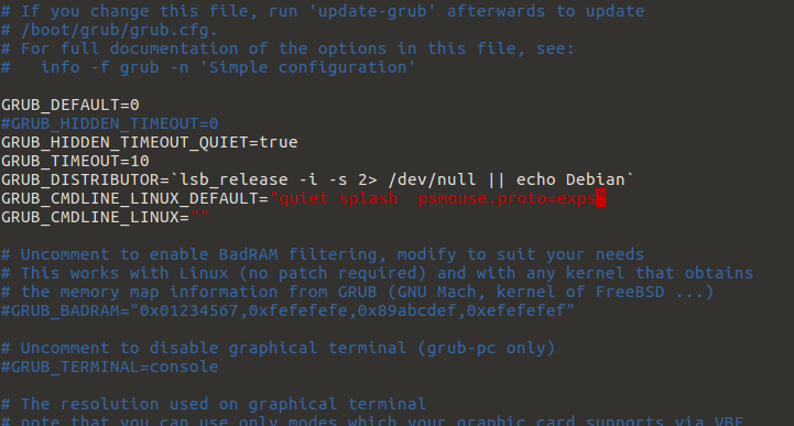 GRUB_CMDLINE_LINUX_DEFAULT="quiet splash psmouse.proto=exps"