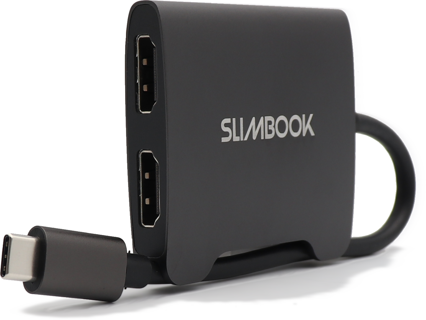 Pequeña, de calidad y llena de funciones, así es nuestro adaptador USB-C a Doble** HDMI 4K 60Hz. Su chasis de aluminio es ligero y compacto, ideal para llevarlo contigo.