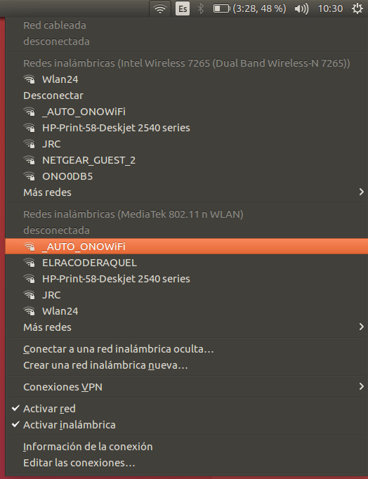 5- Conectas el USB y aparecerá un segundo listado de conexiones del USN ("Mediatek" en este caso), que son las que debes usar para conectarte. Haz clic en las redes que hay debajo, no en las de arriba, y estarás usando el receptor WIFI USB.