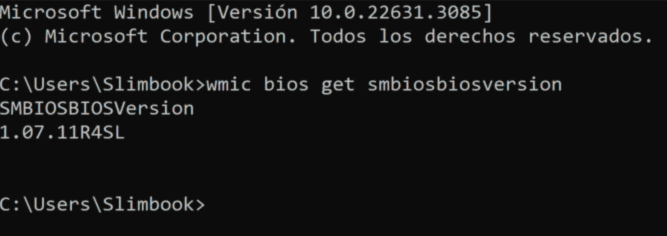 - Ejecutamos el comando wmic bios get smbiosbiosversion