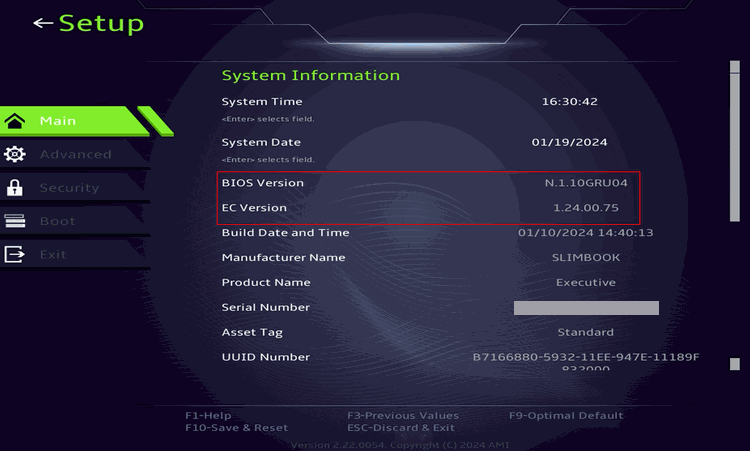 Por ejemplo: "Executive14_Intel12thH_BIOSN105GRU08_ EC147.00.zip" tendría la versión de la BIOS N.1.05GRU08 y del EC 1.47.00.00