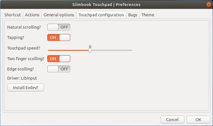 Slimbook Touchpad para evdev, contiene lo siguiente:
