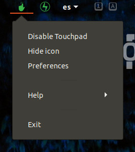 - Un botón para desactivar el panel táctil (Disable touchpad) que cambiará la miniatura del indicador haciéndole ver al usuario el estado de su touchpad. Un recuadro de notificación avisará también de que se ha desconectado correctamente.