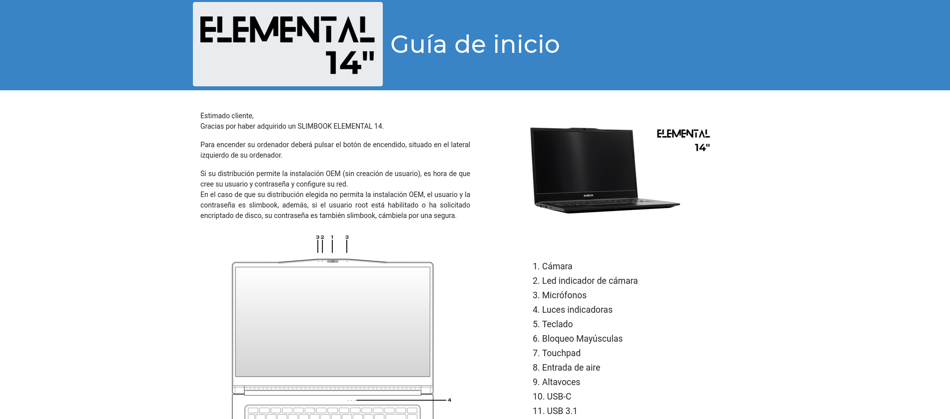 Vamos a buscar, por ejemplo, la guía de inicio del modelo ELEMENTAL 14"